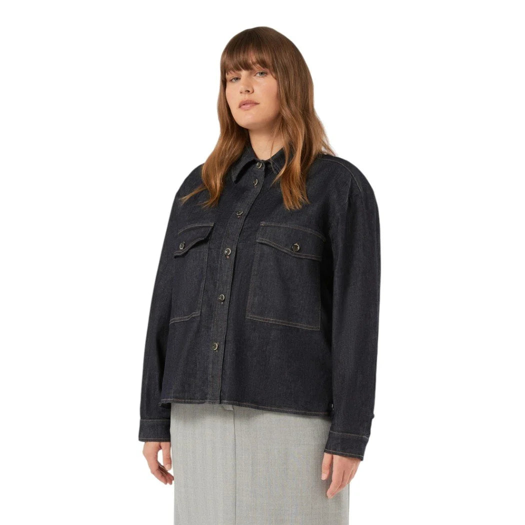 This cotton gabardine tunic with large front patch pockets is a versatile option. You can also wear it as a jacket to complete your seasonal looks.
