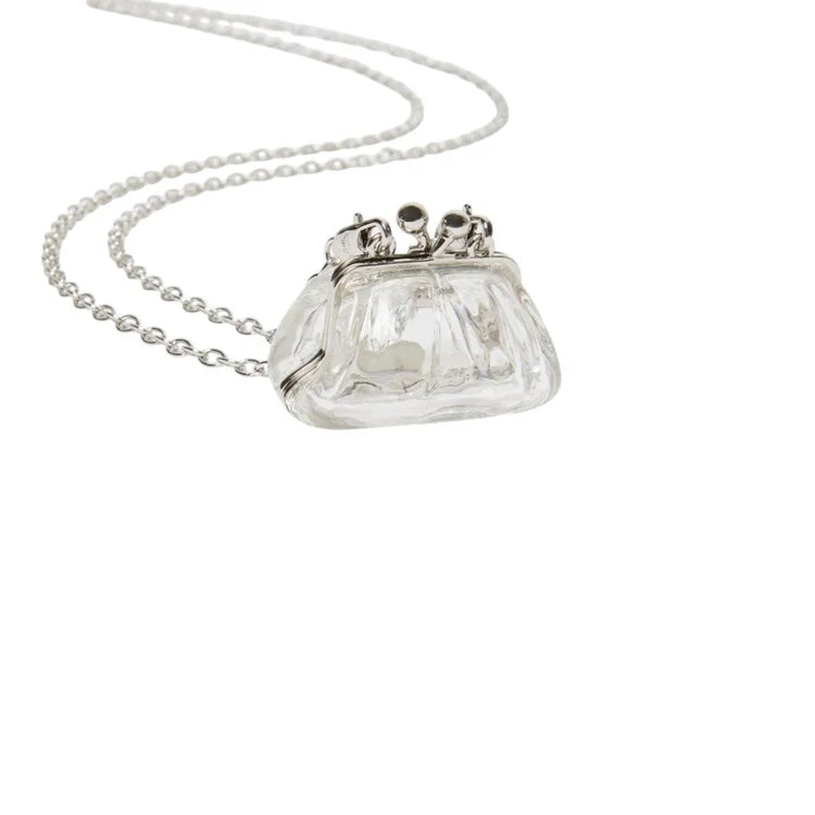 Long, thin chain necklace in galvanized metal, embellished with a large, opening charm in the shape of the iconic Pasticcino Bag and a lobster clasp closure.