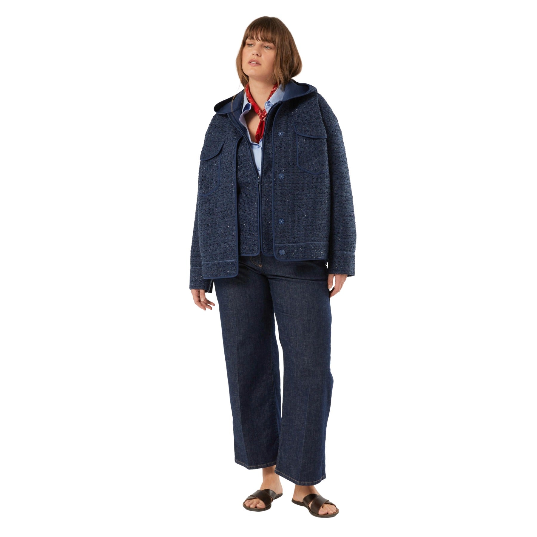 Complete your style with these wide-leg jeans in rinse-wash stretch denim. Versatile and distinctive, they complement any outfit with belt loops, a zip and button closure, slanted side pockets, and patch pockets on the back. This piece is part of the Persona by Marina Rinaldi collection.
