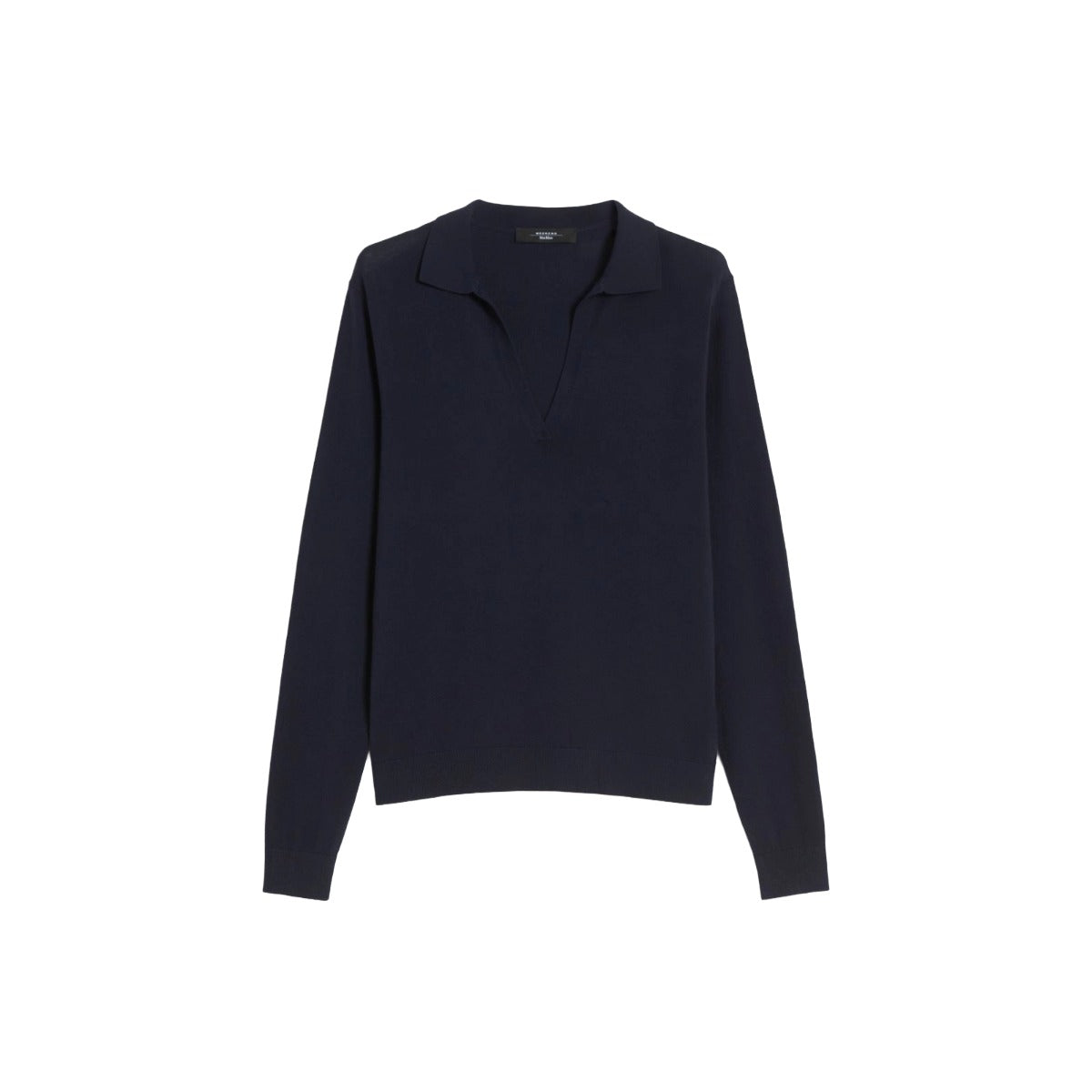 Straight-fit polo shirt. Stretch viscose knit. Open polo collar. Long set-in sleeves. Ribbed collar and cuffs. Straight hem.