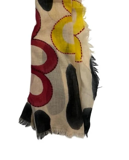 Hand-painted cotton scarf with up&down embroidery, fringed on four sides.