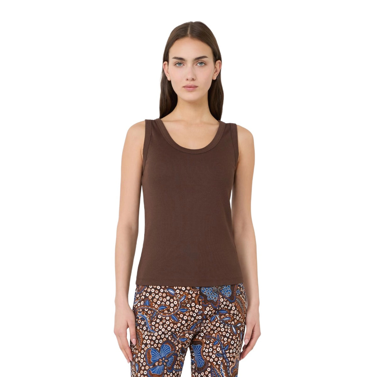 Regular fit. Stretch cotton top. Slightly wide round neckline. Wide straps. Straight hem.