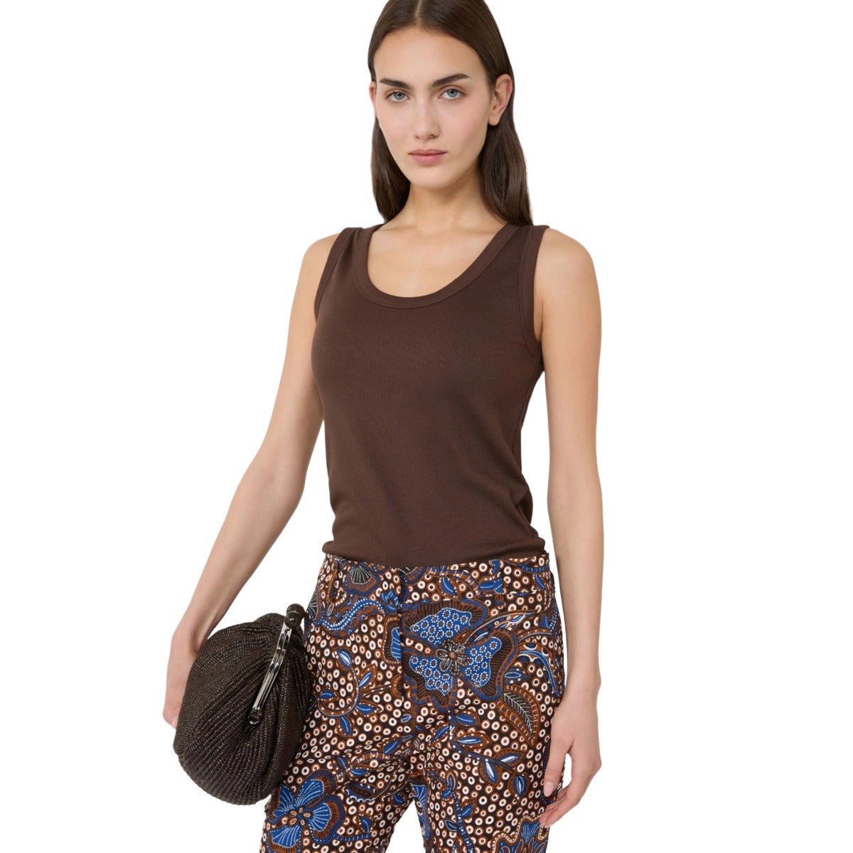 Ribbed sleeveless top, personalized with a butterfly logo at the back of the neck.