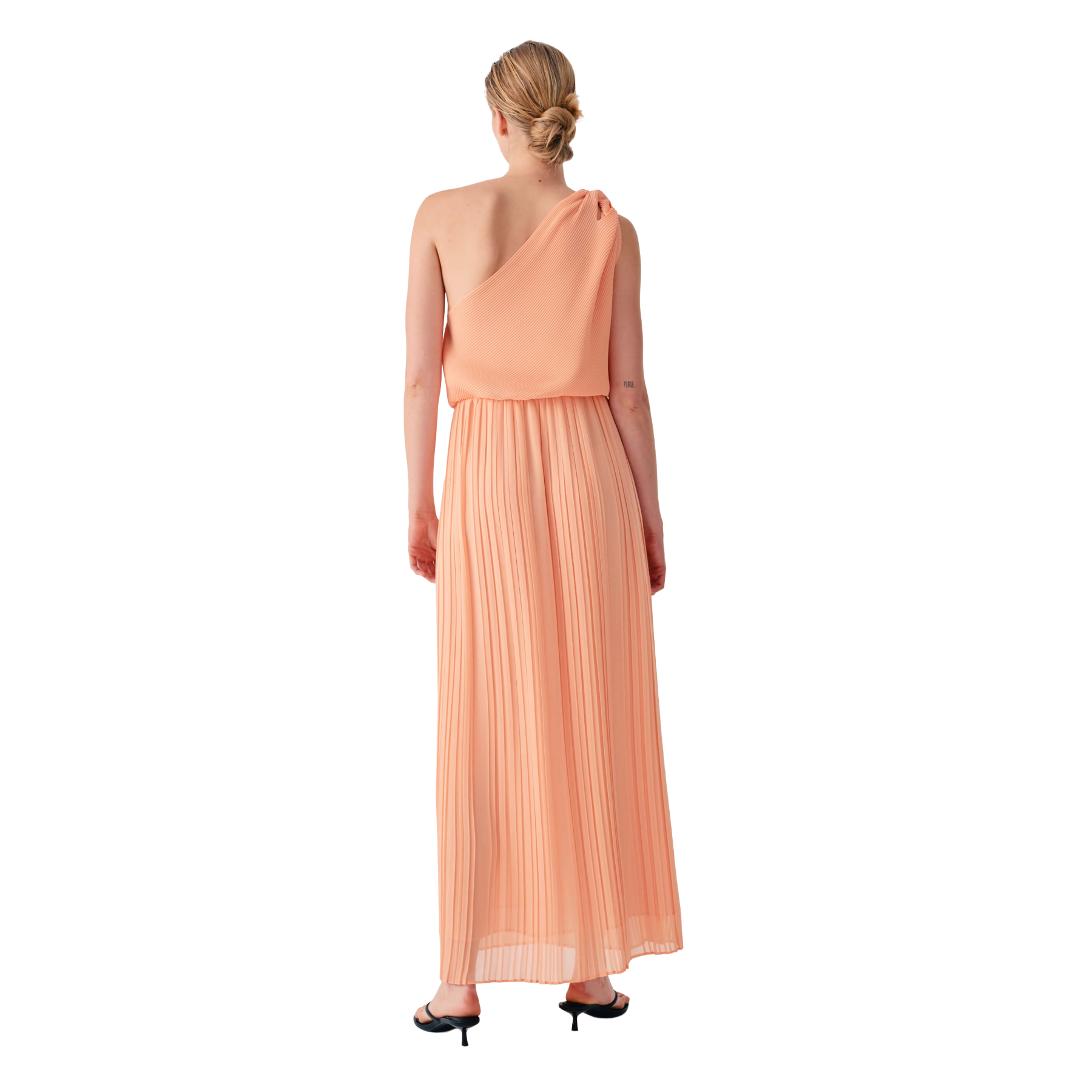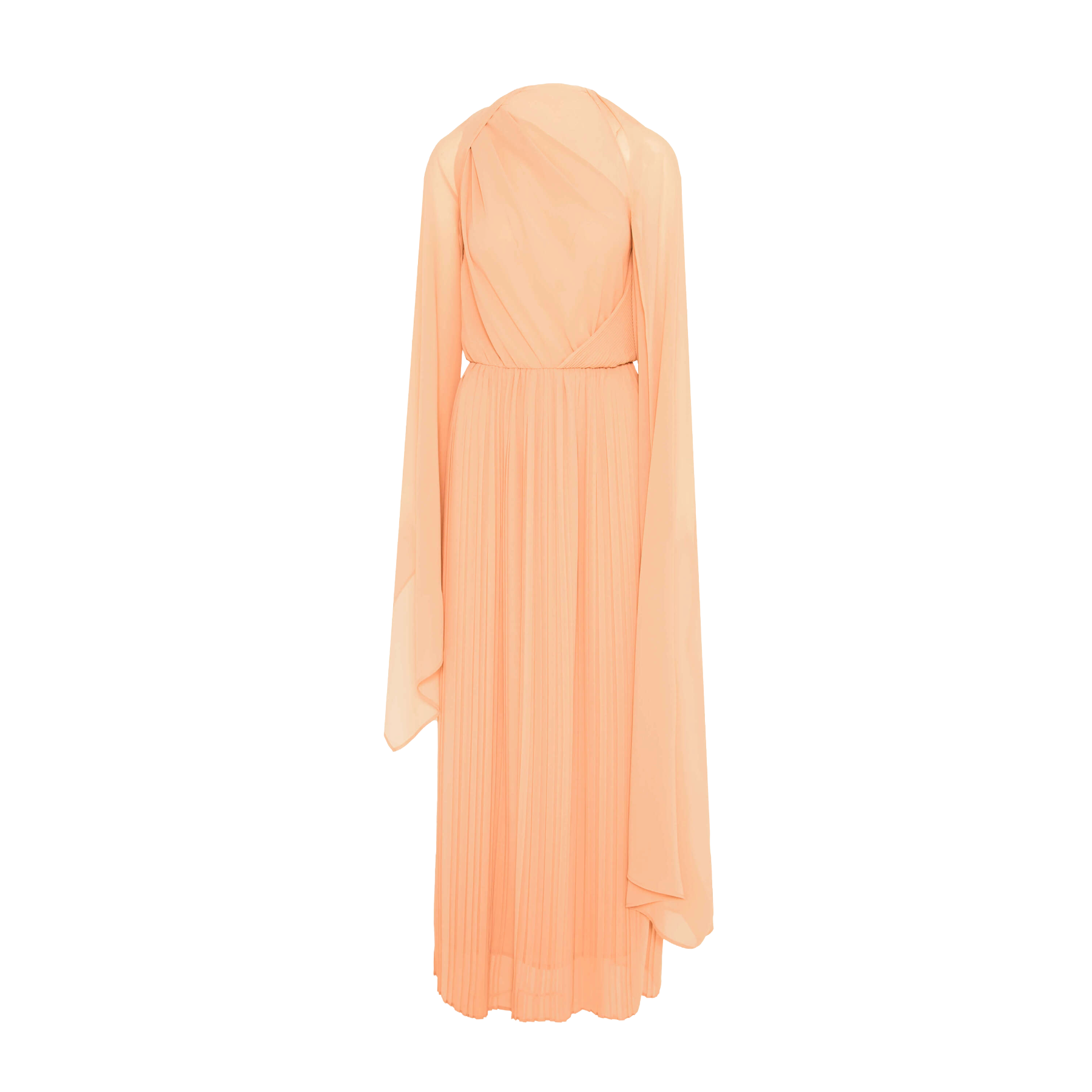 Abito midi in chiffon con corpetto drappeggiato e ampie maniche fluide. La texture leggera e le graziose pieghe conferiscono al capo un'eleganza eterea e senza tempo. Prodotto in Italia.