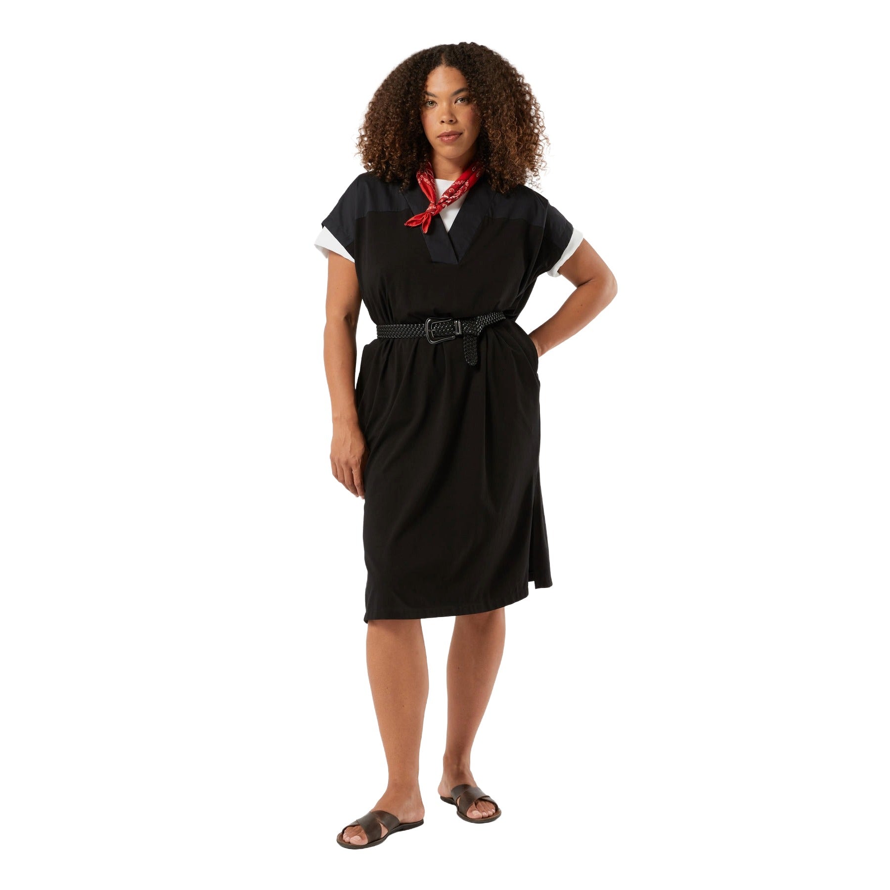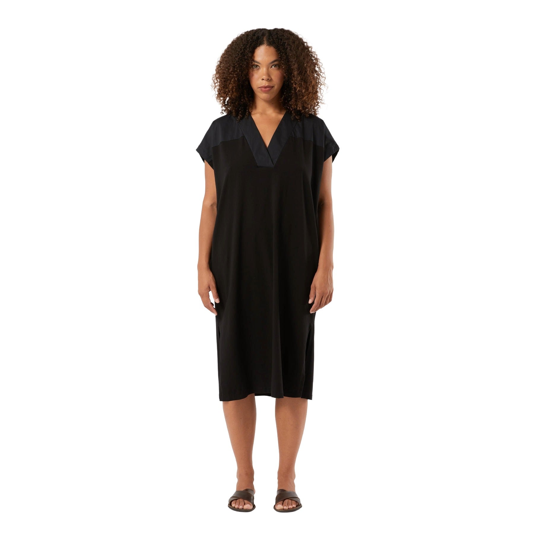 Ha un inserto in popeline di cotone al carré, all'interno delle maniche e allo scollo l'abito smanicato in jersey. Passe-partout di stile che unisce eleganza e versatilità. Il capo fa parte della collezione N.O.W.