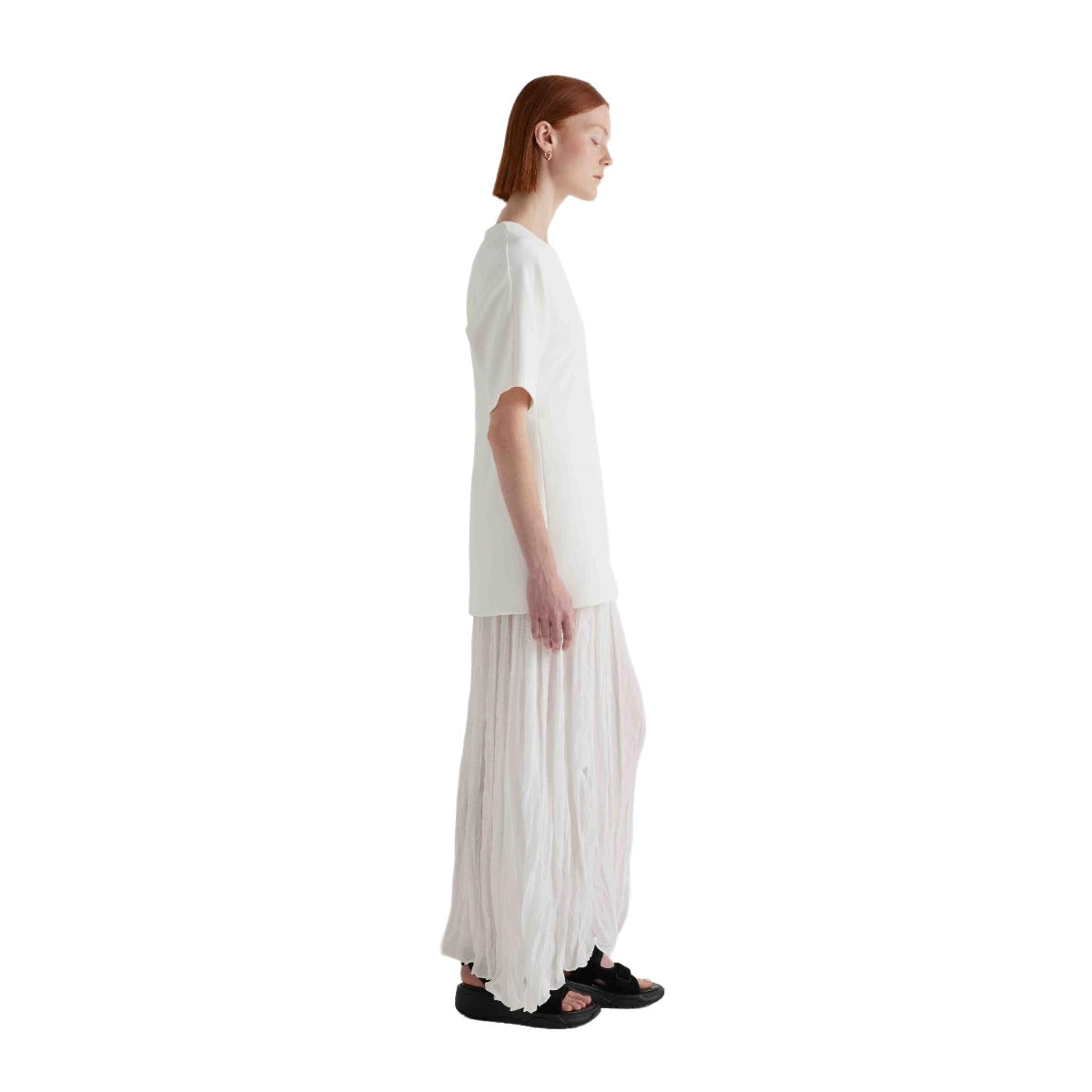ABITO LUNGO GIROCOLLO CON GONNA PLISSETTATA E MANICA CORTA A KIMONO.CHIUSURA SUL DIETRO CON ZIP.
