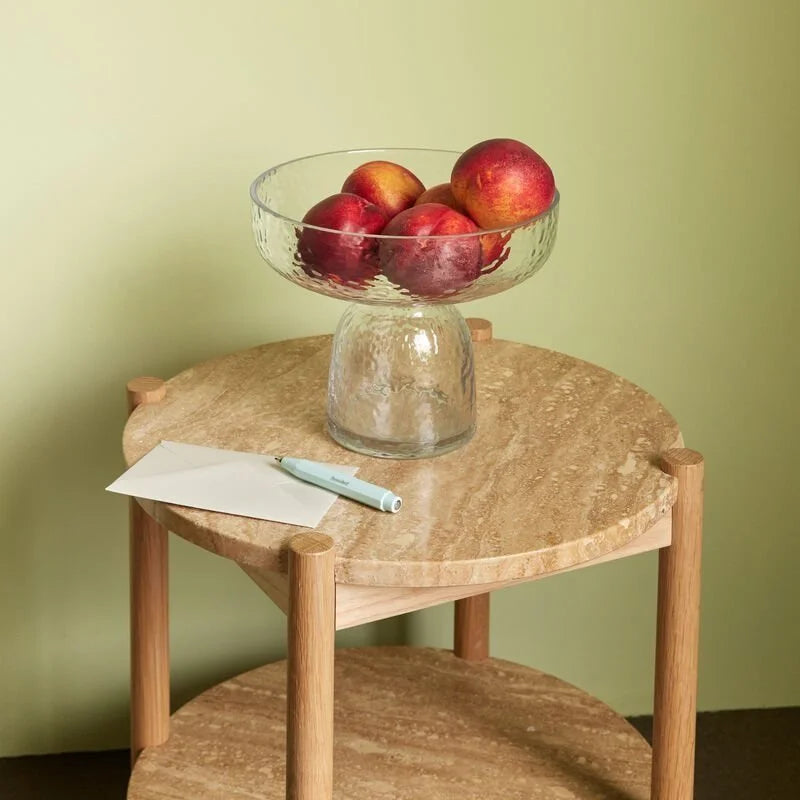 Il vaso Aino è una splendida aggiunta alla tua collezione di decorazioni per la casa. Questo squisito pezzo è realizzato in vetro trasparente testurizzato, il che lo colloca in una categoria a sé stante. Il suo design semplice ed elegante lo rende un pezzo distintivo, perfetto per mettere in mostra i tuoi fiori preferiti o come ciotola scultorea per riporre gli oggetti. Il vaso Aino è versatile, consentendoti di creare una varietà di composizioni floreali adatte a qualsiasi occasione.